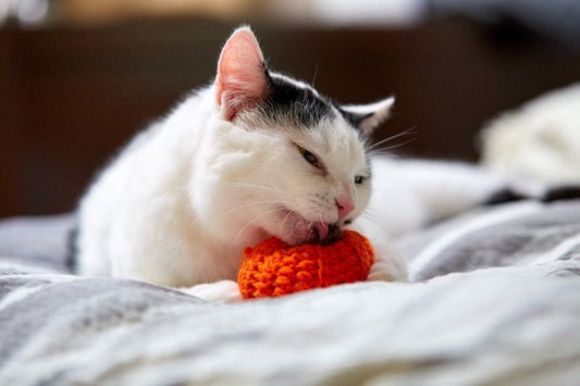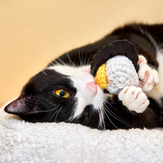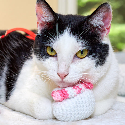 Durable crochet cat toys chock full of organic catnip, silver vine, and valerian root. Handmade in Seattle, WA.
