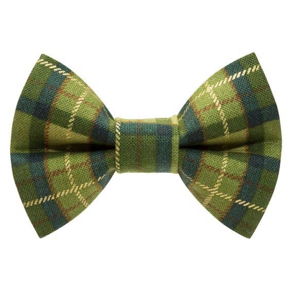 Cat/ Small Dog size- 2.75" x 1.75" The Bow Tie features an elastic loop for easy put on and take off. All bow ties are handcrafted with love by Sweet Pickles Designs in Portland, OR. *Please note pattern may vary.